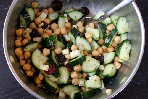 Chickpea and Cucumber Salad with Dried Cherries and Cheese