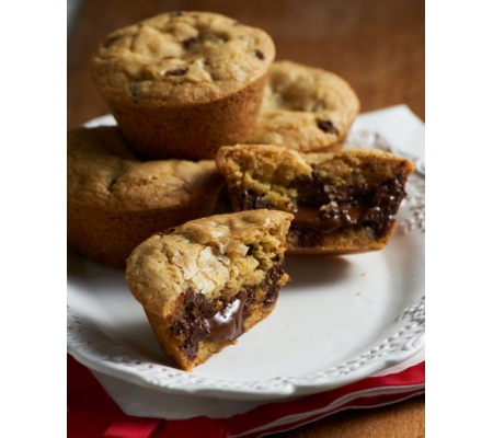 - Refrigerate the cups for 3-4 minutes. Scoop 2 more Tbsp of the cookie dough on top of each of the refrigerated cups and press around the edges to seal the melted chocolate in the middle. Bake on the bottom rack of the oven for 23-25 minutes, until golden brown.