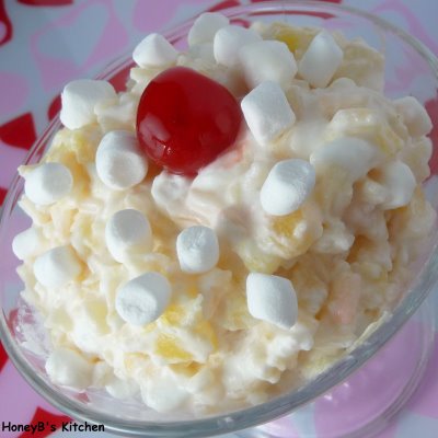 In a large bowl combine the cooked, cooled rice, sugar, pineapple and marshmallows. Fold in the whipped cream. Chill for 4 hours.