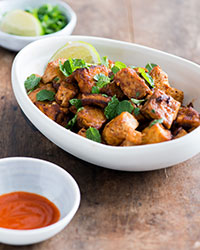 1.Pat the tofu dry with paper towels to remove excess water. Cut into 1-inch cubes.