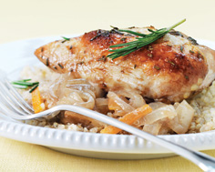 2 Combine marmalade, balsamic, mustard and rosemary. Divide in half. Whisk 1 tbsp (15 mL) of oil, reserving remainder, into half of mixture. Brush marmalade mixture with oil on to the chicken breasts. Season breasts with salt and pepper.
