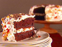 5. Put 1 cake on a serving plate. Top with 1-inch of the whipped cream crunch mixture. Top with the second layer of cake and continue frosting the entire cake with the remaining whipped cream crunch mixture. Sprinkle the top and sides of the cake with the ground chocolate. Serve.