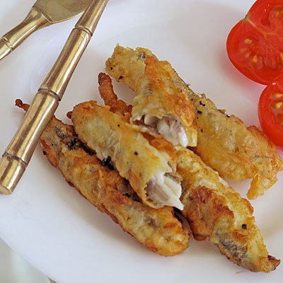 This is eating at its simplest and most elemental. Fresh whole anchovies are dredged in flour and fried in hot oil. They are served hot and salty and make a great appetizers, tapas, or antipasti.