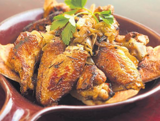2 Preheat oven to 475 degrees F. Place wings in a baking dish, single layer, skin side up. Cook for 25 minutes, turning wings over halfway through cooking process to brown both sides. Serve with onions and focaccia, if desired.