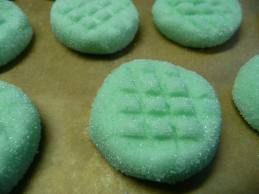 To make mints, dip individual flexible candy molds into superfine sugar. Press in mint mixture. Turn out onto waxed paper covered with superfine sugar. Repeat until all mixture is used. Or: Shape mixture into 3/4 inch balls, using 1 teaspoonful for each ball. Roll in superfine sugar. Place on waxed paper covered with superfine sugar. Flatten slightly with thumb to form 1/4-inch-thick patties. If desired, press back of them lightly on patties to form ridges.