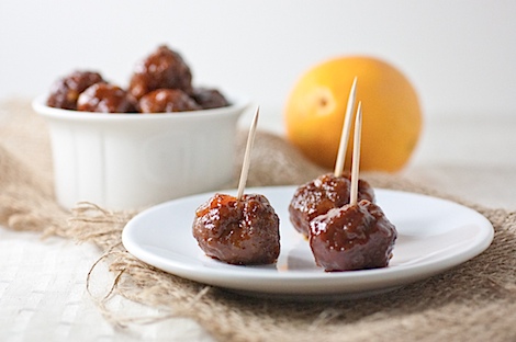 This recipe is a fun twist on the class grape-jelly meatball recipe that most people have had at one pot luck or another. The orange marmalade gives the meatballs a lovely tangy flavor that still keeps the sweetness of the original version. And if you’re short on time, don’t worry about making the meatballs, just buy some frozen (and check out the alternate preparation directions below the recipe).