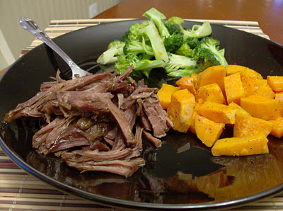 I am so excited about this new method (new to me, at least) of using foil. The roast was absolutely perfect. Keeping the roast in the foil kept it tender and moist. You could definitely use different seasonings if you desire (rosemary, kosher salt, onion powder, freshly pressed garlic, etc.). But I think the two keys of success in this recipe were 1. Using a chuck roast (which is the best type of roast to use in the slow cooker) and 2. Wrapping it in the foil.