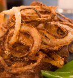 4. Fry onions 6 to 8 minutes, until golden. Drain on a paper towel-lined plate, and serve immediately.