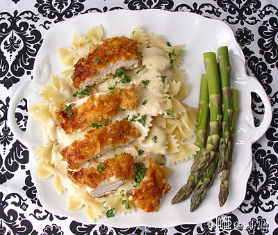 Crispy Chicken with Creamy Italian Sauce and Bowtie Pasta