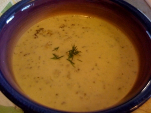 Add the broth, broccoli, and dried dill and simmer until the vegetables are soft.