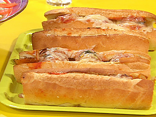 Cut sub rolls making the bottom a little deeper than the top. Hollow out a little bread and lightly toast the sub rolls under broiler. Fill the bottoms of the breads with flattened balls and sauce. Combine the provolone and remaining Parmigiano. Cover the subs with cheese and return to broiler to melt the cheese until golden.