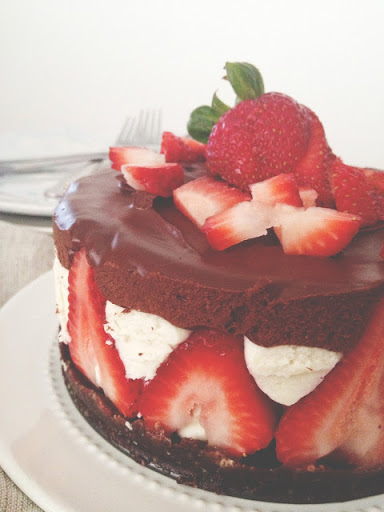 A rich chocolate walnut crust layered with freshly sliced strawberries, creamy coconut vanilla bean cream and drizzly chocolate ganache frosting. This is a recipe from Marquis Matson of Real Raw Kitchen however it seems to have been gifted straight from heaven above. Delicious and oh so decadent!