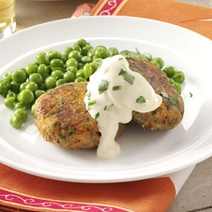 Meanwhile, microwave peas according to package directions. Stir in the pepper and remaining butter and parsley. Combine the mayonnaise, mustard and milk. Serve with tuna cakes and peas.