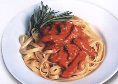 Fettuccine with Veal in a Roasted Red Pepper Cream Sauce