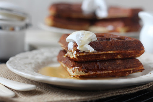 3.Pour batter into the waffle iron (greased, if needed) and cook until crispy. Be patient. Mine took less than 5 minutes per waffles. Repeat with the rest of the batter. My batter made 6 round waffles.