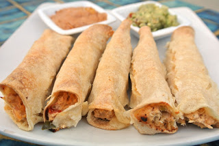 Preheat oven to 425 degrees and line a baking sheet with foil to make clean-up a breeze. Rinse your Chicken breasts and season with salt and pepper. Heat a skillet over medium high heat and add 1 TBSP olive oil. Sear your chicken breasts by cooking 2 minutes on each side. Add your chicken and 1 cup chicken broth to a crock pot and heat on high for 3 hours. Once it is done, using two forks, shred the chicken inside the crockpot with the broth. It will just fall apart. Strain the Chicken from the broth. Add cream cheese, tomato, sweet onion, cilantro jalapeno, salt, lime juice, chili powder, cumin, garlic, cilantro and green onion in a large bowl. Fold in chicken and shredded cheese and stir until combined. Microwave the tortillas for a few minutes to soften before use, I do this in my tortilla warmer, if you do not have one, wrap in parchment paper before placing in the microwave. Place 2-3 tablespoons of filling across the middle of one tortilla. Roll the tortilla around the filling and place seam-side down on the prepared baking sheet. Repeat with the remaining tortillas until all filling has been used. Brush a little bit of canola oil over the top of the taquitos and sprinkle with salt. Bake for 25-30 minutes, or until tortilla turns a golden-brown color and becomes crisp. Serve with a side of salsa and guacamole.
