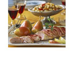 Bacon-Wrapped Pork With Peppers and Potatoes
