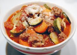 1. Sauté sausage, onion, and garlic in a Dutch oven over medium heat 8 minutes or until sausage crumbles and is no longer pink; drain. Stir in tomatoes, next 8 ingredients, and 10 cups water; bring to a boil. Cover, reduce heat to low, and cook 20 minutes or until carrots are crisp-tender.
