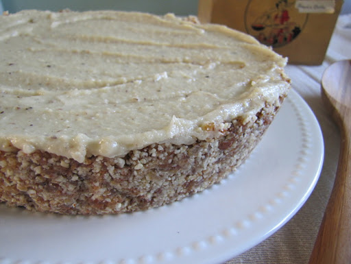 Line a cake pan or pie tin with non-stick or waxed paper. Press mixture into the sides and bottom of pan.