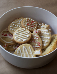 5. Decorate the cookies with the royal icing. Serve immediately or store in an airtight container with a piece of white bread to keep the cookies soft.