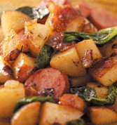2. In large skillet, saute kielbasa and onion in oil until onion is tender. Add potatoes; saute 3-5 minutes longer or until kielbasa and potatoes are lightly browned.
