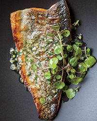 Set the trout on plates, skin side up, and top with the watercress. Spoon some of the vinaigrette over the fish and watercress. Pass the remaining vinaigrette at the table.