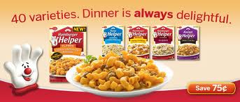 Notice how similar the recipes are? Hamburger Helper is like a template. (This is how Betty Crocker churns out a zillion varieties.) You plug in more or less milk to control the creaminess, a certain type of pasta (or rice or potatoes), sometimes tomatoes, certain herbs/seasonings, and more or less (or no) cheese. You can make a homemade helper for any variety of Hamburger Helper that appeals to you–invent your own! Put labelled sauce packets for your family’s favorite “helpers” away in your pantry for busy days (add a little 3×5 card with directions for the water, milk, cheese, etc, per variety) and you’ll never go hungry again. When you’re tired, everybody’s hungry, and you need dinner that won’t make you think hard, grab your sauce packet and your bag of pasta (or rice or potatoes) with your little cheater 3×5 card and you’re set.
