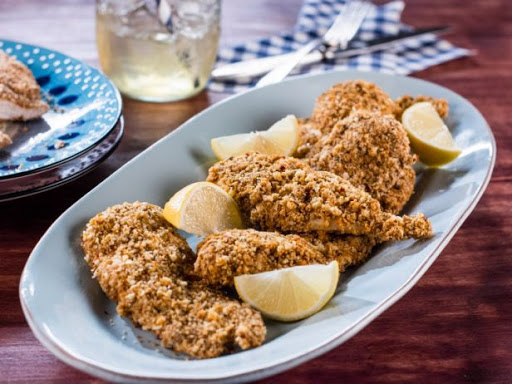 Combine the breadcrumbs, Parmesan, lemon zest, red pepper flakes and a pinch each of salt and black pepper in a shallow dish. Remove the chicken from the buttermilk mixture, letting the excess drip off, and dredge in the breadcrumb mixture until evenly coated. Lay the pieces flat on a nonstick baking sheet and refrigerate, uncovered, for 30 minutes.