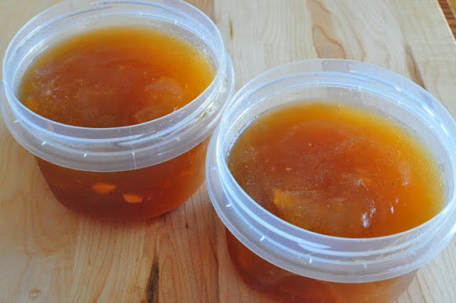 7. Use or freeze the stock: Use the stock immediately, or freeze for later use. I portion the stock into both 1 quart and 2 cup containers for freezing.