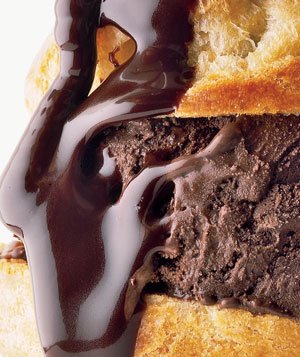 1.In a small saucepan, whisk together the sugar, cocoa powder, and ½ cup water; bring to a boil. Remove from heat and whisk in the chocolate until smooth. Serve with the Double-Chocolate Profiteroles