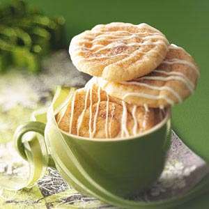 Shape a heaping tablespoonful of dough into a 6-inch log. In a shallow bowl, combine cinnamon and remaining sugar; roll log in cinnamon-sugar. Loosely coil log into a spiral shape; place on a greased baking sheet. Repeat, placing cookies 1 in. apart. Sprinkle with remaining cinnamon-sugar.