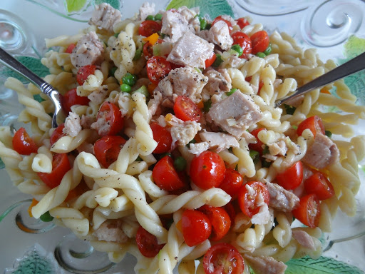 Prepare the tuna salad and eat it over a bed of lettuce for a light lunch, or add the tuna salad to the cooked pasta for a main meal. Enjoy!