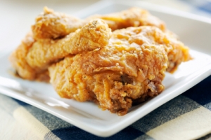 Place the cornflake crumbs on a sheet of wax paper. Dip the chicken into the crumbs pressing so the crumbs adhere. Place the chicken in the pan and lightly spray with nonstick spray.