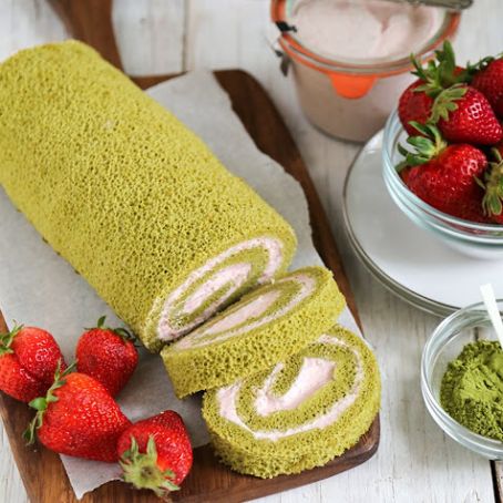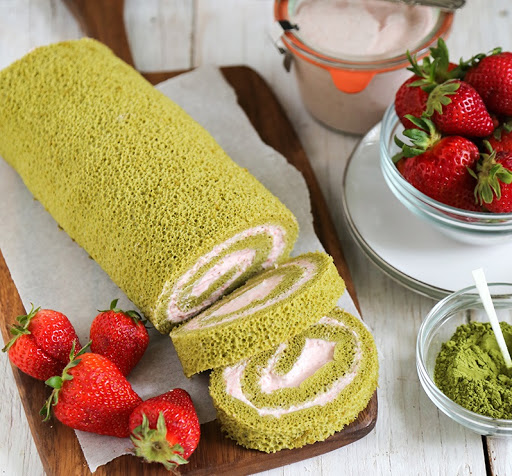 MATCHA GREEN TEA SWISS ROLL WITH STRAWBERRY MOUSSE