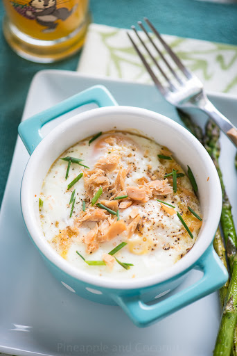 Smoked Salmon Baked Eggs with Roasted Asparagus