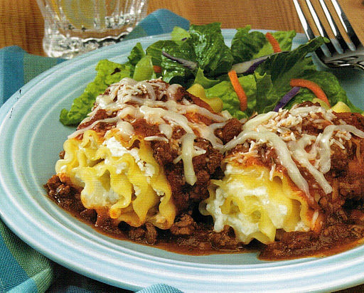 Roll up the noodles tightly. Place, seam sides down, over the sauce in the baking dish. Spoon the remaining sauce over the rolls. Sprinkle with the Parmesan. Bake the rolls until heated through and bubbly, about 30 minutes. Sprinkle with the remaining mozzarella. Let stand for 5 minutes before serving.