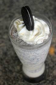 Pour into 2 glasses and garnish with a whole oreo cookie.