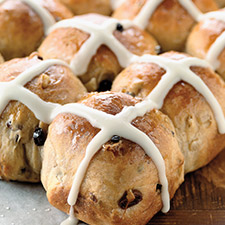 9) Mix together the icing ingredients, and when the buns are completely cool, pipe it in a cross shape atop each bun.