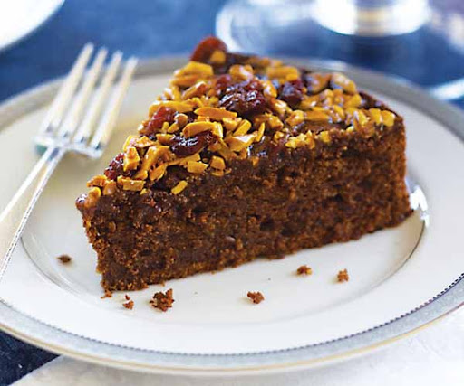 This chocolate cake concludes the Passover meal on a rich note (just as a holiday dessert should). Dried cherries and toasted almonds are folded into a caramel topping and then drizzled over the cake, giving it a crisp (think peanut brittle) topping. I don't often use margarine, though it ensures that this cake keeps with kosher rules. Most large supermarkets carry matzo cake meal around the holidays.