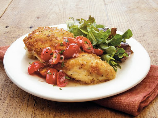 2 In shallow bowl, mix bread crumbs and cheese. In same skillet, heat remaining 4 1/2 teaspoons oil over medium heat. Spray both sides of chicken with cooking spray; coat with bread crumb mixture. Cook chicken in oil 12 to 15 minutes, turning once, until juice of chicken in oil 12 to 15 minutes, turning once, until juice of chicken is clear when center of thickest part is cut (at least 165°F).