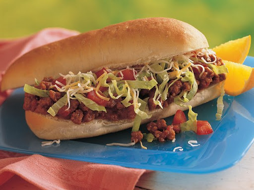 3 To serve, fill each bun with about 1/3 cup beef mixture and top with cheese, lettuce, tomato and sour cream.