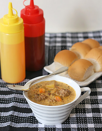 Heat butter+oil in a pot. Form beef into small balls and fry them until brown, remove from pot and set aside.