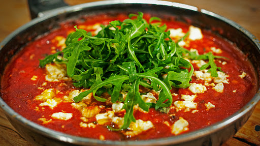 Bake in the oven on high. Once it's almost cooked, add the feta and put back in the oven to allow the feta to soften a little.