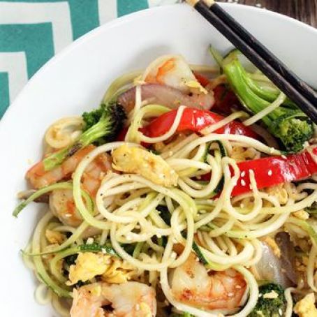 Teriyaki Zucchini Fried Noodles with Shrimp