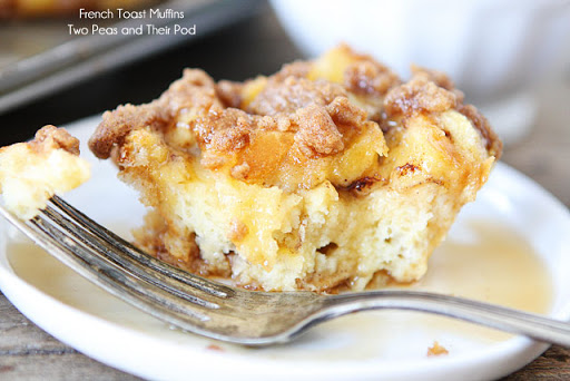 2. Grease a 12 cup muffin tin. Add about 1 cup of bread cubes to each muffin cup. Carefully pour egg and milk mixture evenly over each muffin tin. You may need to press down on the bread cubes after you pour a little mixture and then pour more. Pour slowly or you will have a mess. Cover the muffins with plastic wrap and refrigerate for 2 hours or up to overnight.