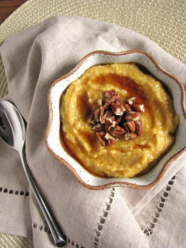 Stir the pumpkin puree into the grits until well-combined and warmed through. Stir in pumpkin pie spice, vanilla extract, and brown sugar.