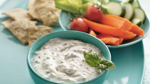 2. Fold in parsley, chives, basil and garlic salt. Serve immediately with dippers, or cover and refrigerate until serving time.