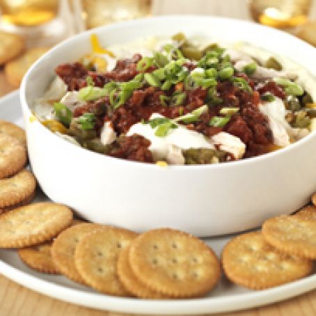 SPREAD cream cheese onto bottom of 1-qt. microwaveable bowl; top with layers of peppers, chicken and shredded cheese.