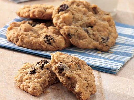 Heat oven to 375°F. Spray cookie sheets with nonstick cooking spray. In large bowl, combine sugar, brown sugar and margarine; beat until light and fluffy. Add vanilla and egg; blend well. Add flour, baking soda, cinnamon and salt; mix well. Stir in oats, raisins and nuts.