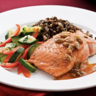 Lime juice, chili powder and pepitas give this salmon Mexican flair. Serve with wild rice and steamed vegetables.